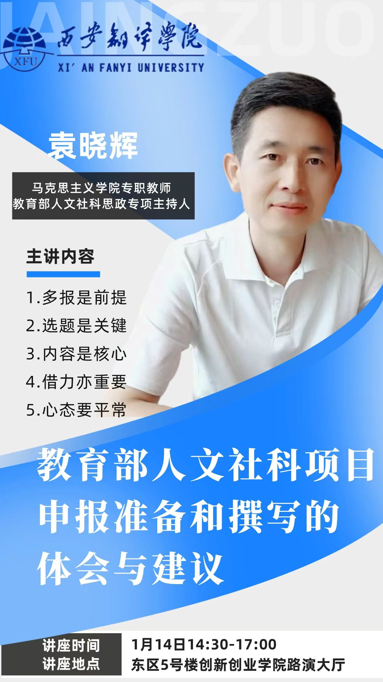 讲座主题:教育部人文社科项目申报准备和撰写的体会与建议