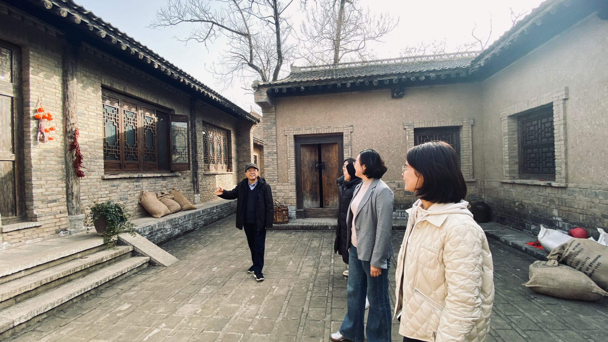1月14日,研究中心团队前往西安市长安区唐村开展调研活动。此次调研深入南堡古寨核心区域展开,系统考察其产业发展、文化传承与民生改善成效。调研团队一行先后走访了南堡古寨的特色民宿集群、民俗展馆及诗酒花茶主题体验区,在闲置宅基地改造的民宿内,细致察看了空间布局、设施配置及客群运营情况,与民宿经营者、当地村民代表亲切交谈,详细询问改造过程中的资金筹措、利益分配机制以及村民就业增收等实际问题,直观感受到空心村活化给村民生活带来的显著变化。
