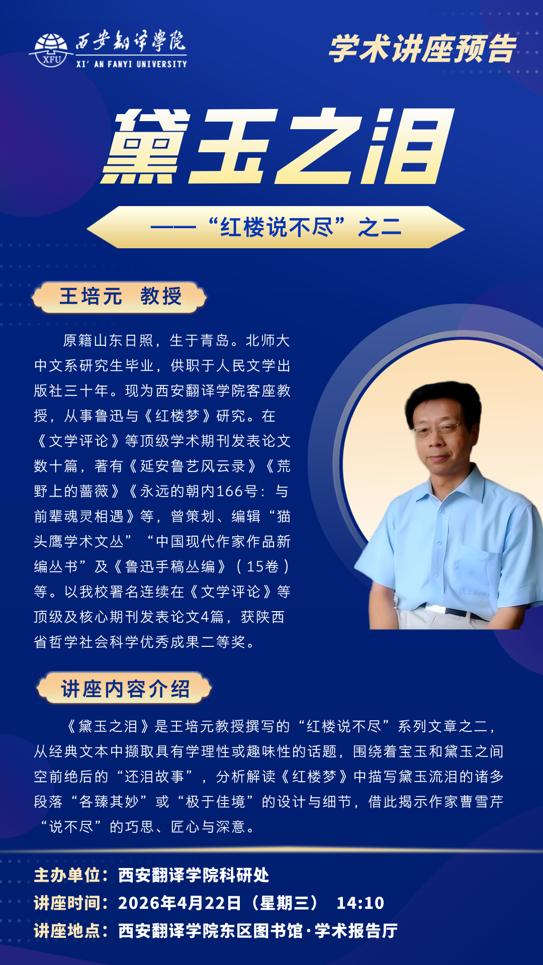 讲座时间:2026年4月22日(周三) 14:10-17:00